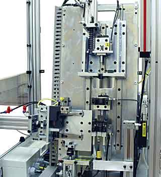 The SolutionThe operator loads the components for a particular variant onto two separate tooling nests within the machine and the guard door closes. The machine reads an RF identification tag mounted on the main body and checks the ‘recipe’ for the appropriate assembly variant. Using a system of conventional and laser sensors, components are checked against the recipe. A third set of tooling within the machine indexes and clamps the main body, at the same time checking for ‘spring clip and washer’ i.e. not ‘washer and spring clip’, ‘washer and washer’ and so on. If everything is confirmed as satisfactory, the guard door reopens and the operator is alerted to continue with the next phase of the build. The guard closes again and a fourth set of tooling compresses the main spring of the component to 150 Kgs and locks it into position. The guard opens to allow the operator to attach a final ‘C’ clip. The machine verifies this clip was installed correctly before finally presenting the finished assembly for removal. ConclusionThe machine proved satisfactory and was delivered on time and to budget. Reaction from the customer’s Principal Engineer: |